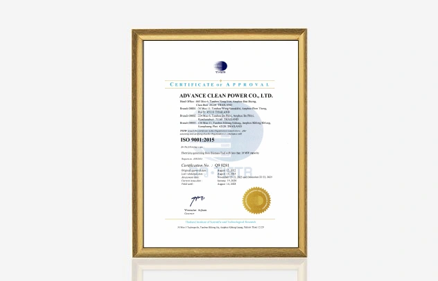ISO 9001:2015 Advance Clean Power Co., Ltd. (Ban Bueng, Phon Thong, Bo Ploy and Khlong Khlung Power Plant)