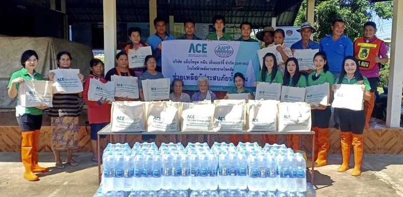 เมื่อเร็วๆ นี้ บริษัท แอ๊บโซลูท คลีน เอ็นเนอร์จี้ จำกัด (มหาชน) หรือ ACE นำทีมพนักงานลงพื้นที่เดินสายมอบถุงยังชีพจำนวนกว่า 200 ถุง ให้กับชาวบ้านผู้ประสบภัยน้ำท่วมในพื้นที่หมู่ 7, หมู่ 14 ตำบลโชคชัย อำเภอโชคชัย, หมู่ 4 ตำบลดอน อำเภอปักธงชัย และหมู่ 2, หมู่ 3 ตำบลโคกไทย อำเภอปักธงชัย จังหวัดนครราชสีมา เพื่อช่วยเหลือบรรเทาความเดือนร้อนให้กับชาวบ้านที่อาศัยอยู่ในพื้นที่ดังกล่าวสืบเนื่องมาจากสถานการณ์น้ำท่วมหนักในช่วงที่ผ่านมา นอกจากนี้ยังร่วมกับเทศบาลตำบลโชคชัย อำเภอโชคชัย จัดทำถุงกระสอบทรายนำไปแจกจ่ายชาวบ้านสำหรับใช้เป็นแนวกำแพงป้องกันน้ำเข้าท่วมบ้านพักอาศัย