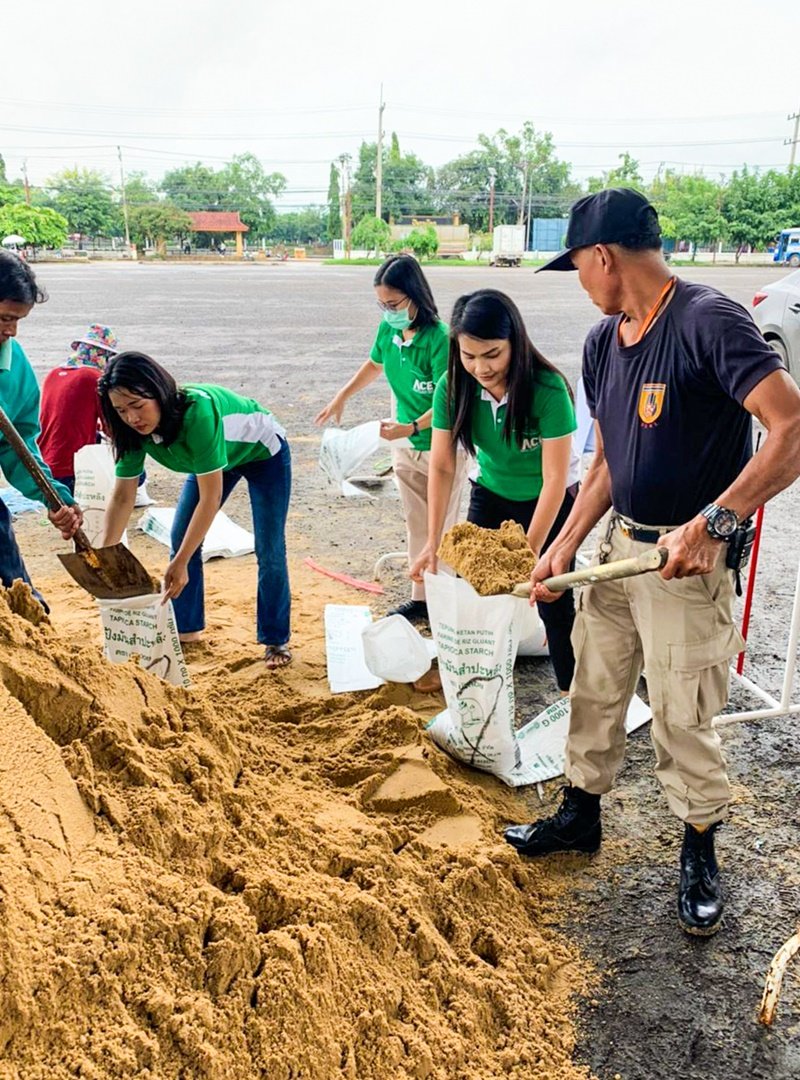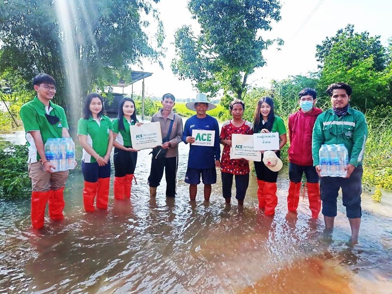 ACE ผนึกกำลังเดินสายลุยน้ำมอบถุงยังชีพ-กระสอบทราย ช่วยชาวบ้านฝ่าวิกฤตน้ำท่วมโคราช