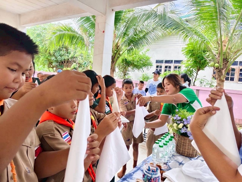 กิจกรรมในครั้งนี้ เด็ก ๆ และคุณครูได้ร่วมกันทำผ้าเช็ดหน้าลายมัดย้อม โดยมีวิทยากรผู้เชี่ยวชาญมาให้ความรู้ แนะนำเทคนิคและขั้นตอนต่าง ๆ อย่างใกล้ชิด ทุกคนต่างตั้งใจและเต็มไปด้วยความกระตือรือร้นในการเรียนรู้ เมื่อได้เห็นผลงานลายมัดย้อมที่สวยงามหลากสีสัน เด็ก ๆ ต่างยิ้มด้วยความภูมิใจในสิ่งที่ตนเองสร้างสรรค์ขึ้น
