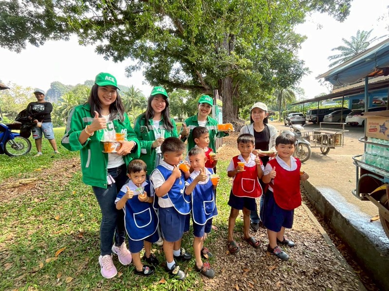 อีกทั้งยังร่วมสนับสนุนเครื่องดื่มชูกำลัง ขนม น้ำดื่มเเก่ประชาชนจิตอาสาที่ร่วมพัฒนาหมู่บ้าน และโรงเรียน