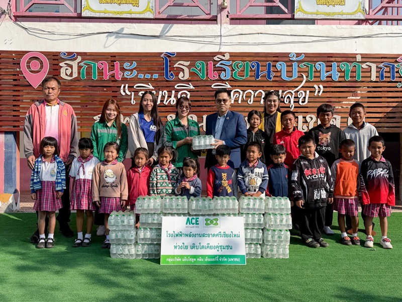 โรงไฟฟ้าพลังงานสะอาดศรีเชียงใหม่ ดำเนินการร่วมสนับสนุนน้ำดื่ม ACE ให้กับโรงเรียนบ้านท่ากฐิน