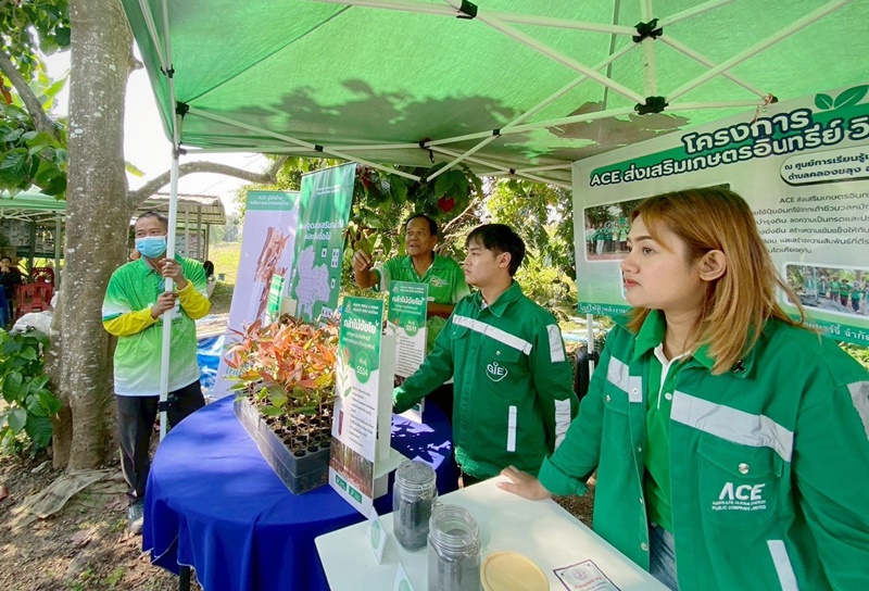โรงไฟฟ้าพลังงานสะอาดคลองขลุง จัดบูธแสดงตัวอย่างเชื้อเพลิงชีวมวลและต้นกล้าชัยโย ณ ศูนย์การเรียนรู้เกษตรอินทรีย์