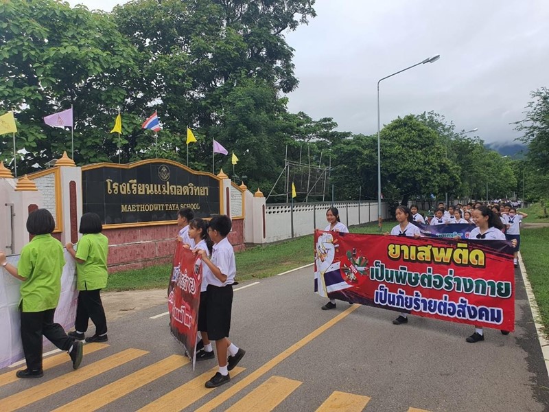 โรงไฟฟ้าพลังงานสะอาดเถิน ร่วมกิจกรรม การเดินรณรงค์เนื่องในวันต่อต้านยาเสพติด ณ โรงเรียนแม่ถอดวิทยา