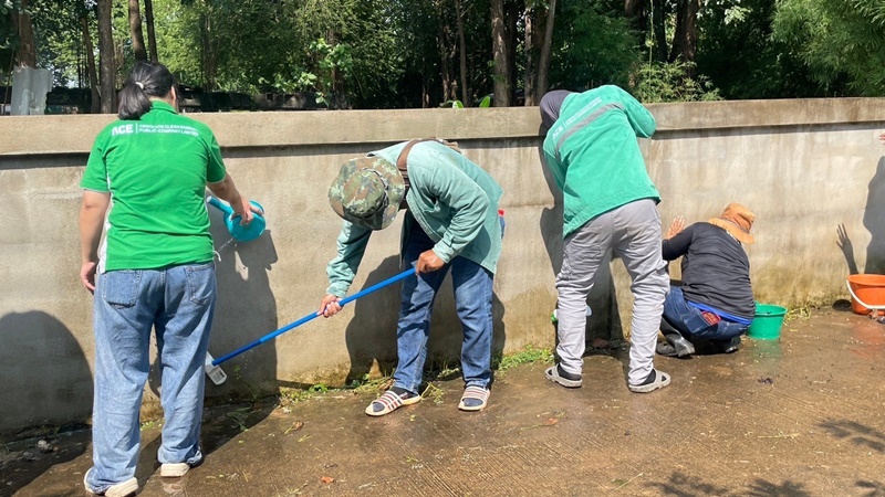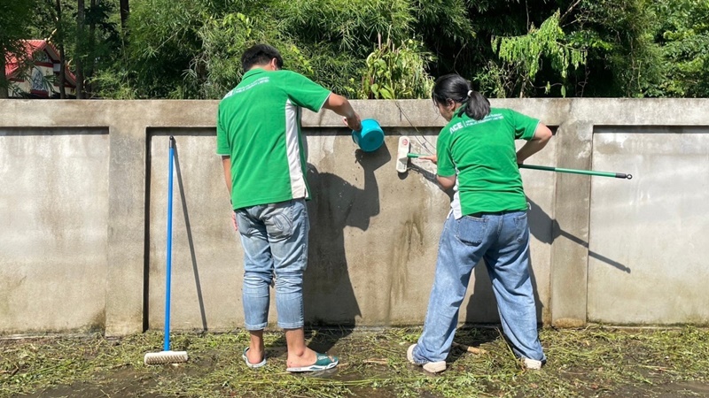 โรงไฟฟ้าพลังงานสะอาดเถิน จัดกิจกรรมโครงการจิตอาสาพัฒนาวัดเเม่เตี๊ยะนอก โดยสนับสนุนสีสำหรับทากำแพงวัด พร้อมทั้งเครื่องดื่มและอาหารว่าง