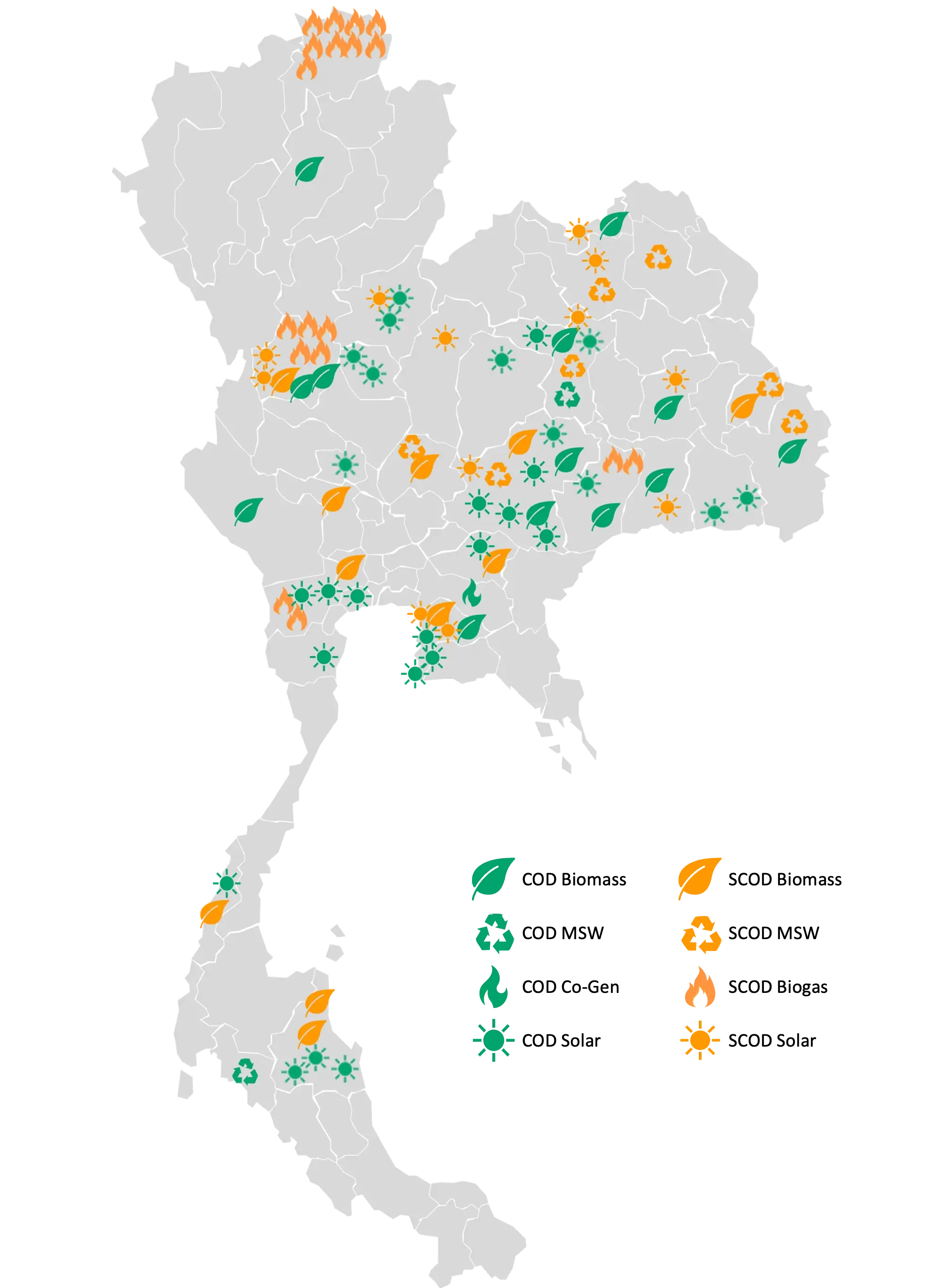 | 30 - 44 | 15 | โรงไฟฟ้าพลังงานแสงอาทิตย์บนหลังคา | 15.66 | 15.66 | 2561 - 2568 | ชลบุรี, นครราชสีมา, ชัยภูมิ, ปราจีนบุรี, ขอนแก่น, สมุทรสาคร, ชลบุรี, เพชรบุรี, บุรีรัมย์ |