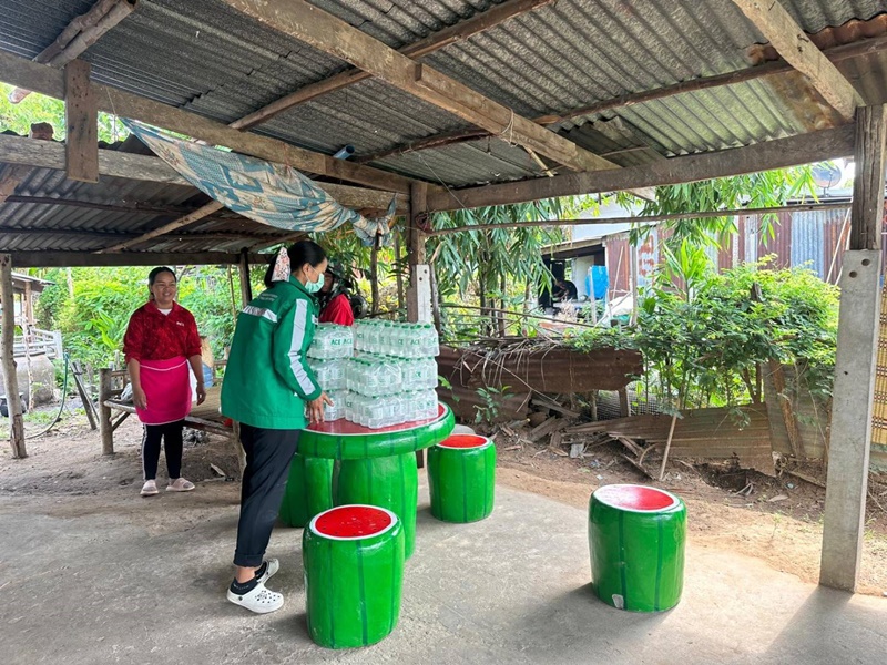 โรงไฟฟ้าพลังงานสะอาดดอนมนต์ร่วมกับโรงไฟฟ้าพลังงานสะอาดเมืองบุรีรัมย์สนับสนุนน้ำดื่มให้แก่ผู้นำชุมชนและชาวบ้านที่ร่วมกันซ่อมแซมหลังคาบ้าน